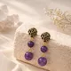 Infuse your look with natural elegance with the 2 Drops Rose Earrings. Featuring a delicate tiered design that showcases beautiful semi-precious stones, these earrings offer a sophisticated blend of organic textures and timeless style. Their graceful silhouette makes them the perfect accessory for adding a refined pop of color to any outfit. Express your individuality—these drops are available in a stunning range of colors and stones, including Carnelian, Amethyst, Citrine, Chrysocolla, and Black Tourmaline.